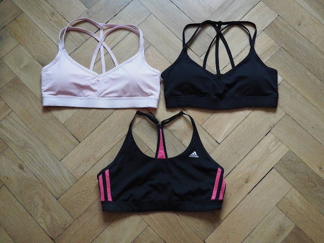 Jógové podprsenky - horní dvě jsou nové úlovky z Lidlu, super pohodlné s krásným detailem na zádech a spodní je oboustranná Adidas, na kterou nedám dopustit